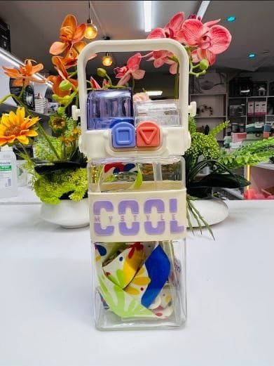 Two Part Lovely Kids Cartoon Water Bottle-White