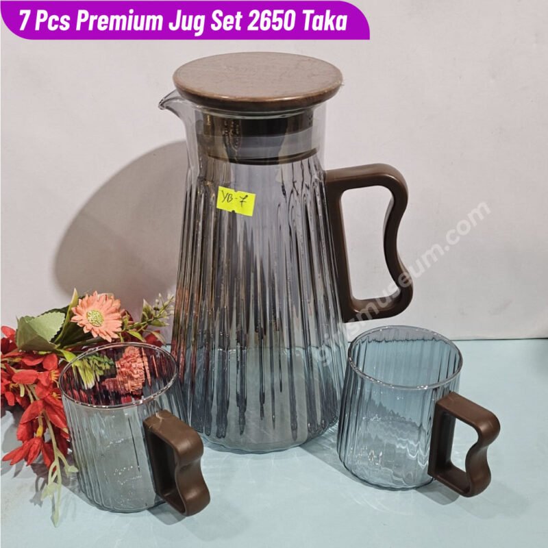 Borosilicate Glass Water/Juice Jug- 7 Pcs Set-(Coffee)