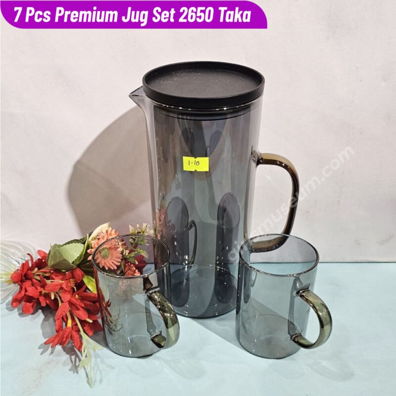 Borosilicate Glass Water/Juice Jug- 7 Pcs Set-(Black)
