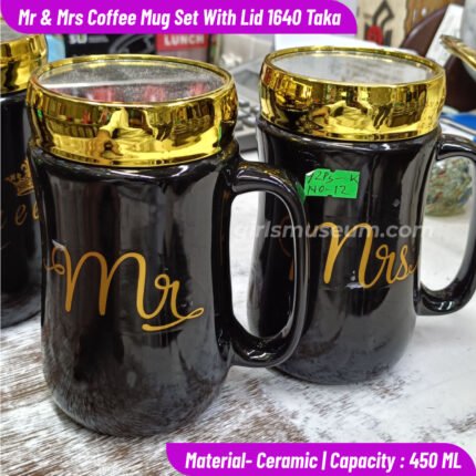 Mr & Mrs Printed Black Ceramic Mug With Golden Lid – 450 ML