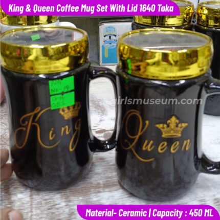 King & Queen Printed Ceramic Mug With Golden Lid – 450 ML