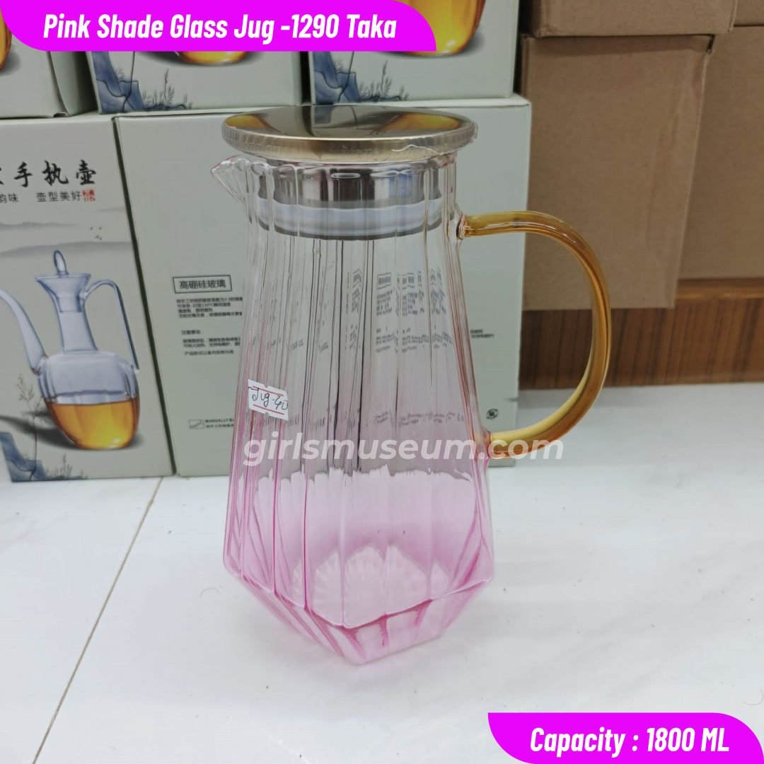 1.8 Liter Pink Shade Borosilicate Water Jug with Golden steel Lid