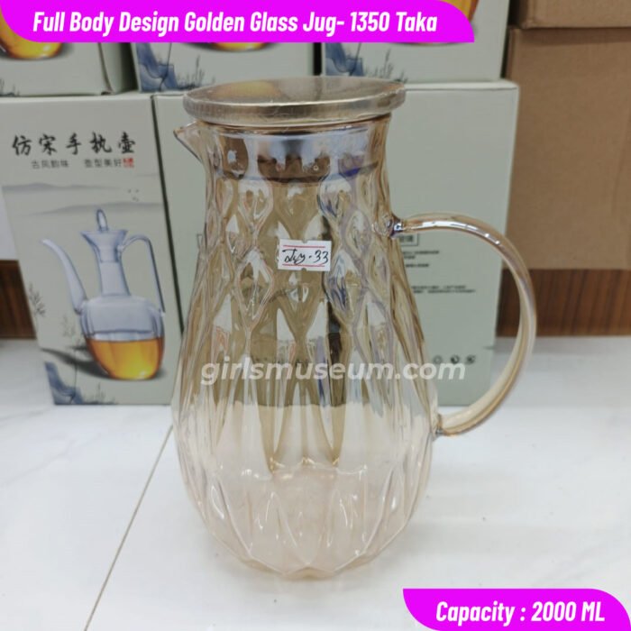 Be the first to review “2 Liter Golden Full Body design Borosilicate Water Jug with Golden steel Lid”
