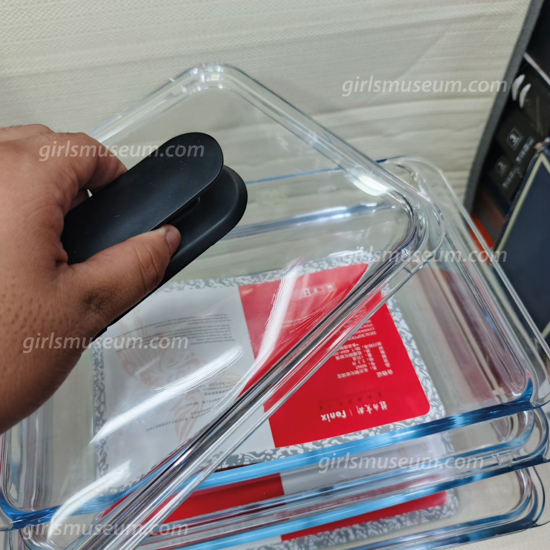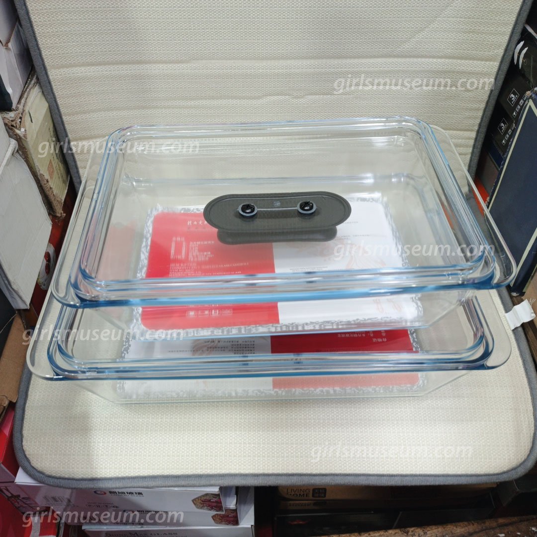 3 Pcs Tempered Glass Rectangular Deep Serving Dish with Lid