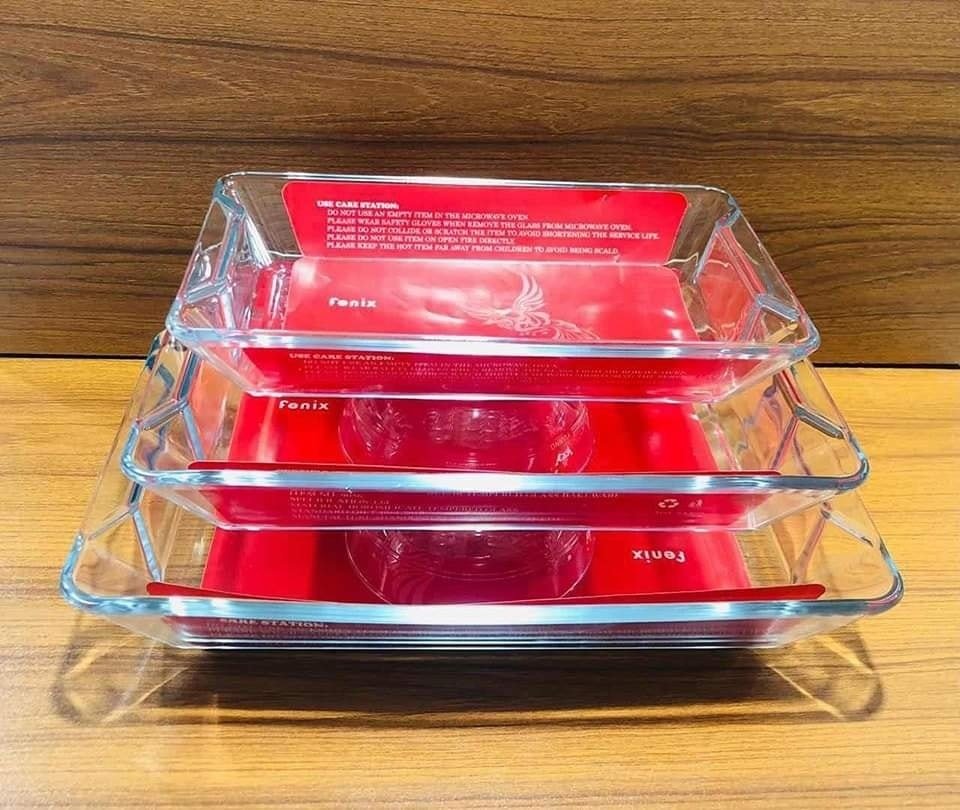 3 Pcs Tempered Glass Rectangular Serving Dish Two Handle