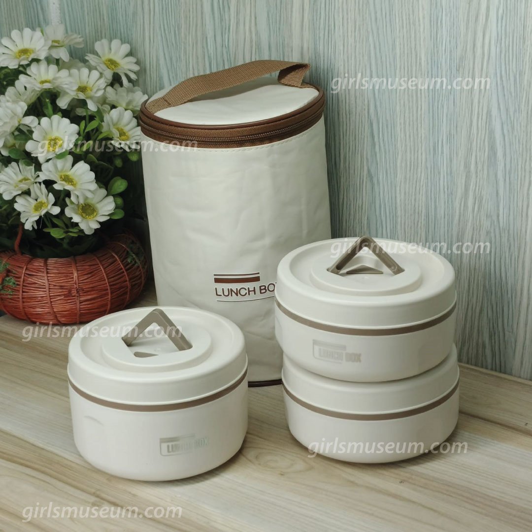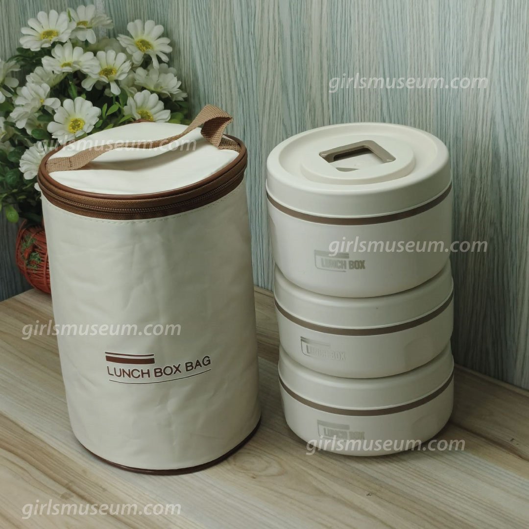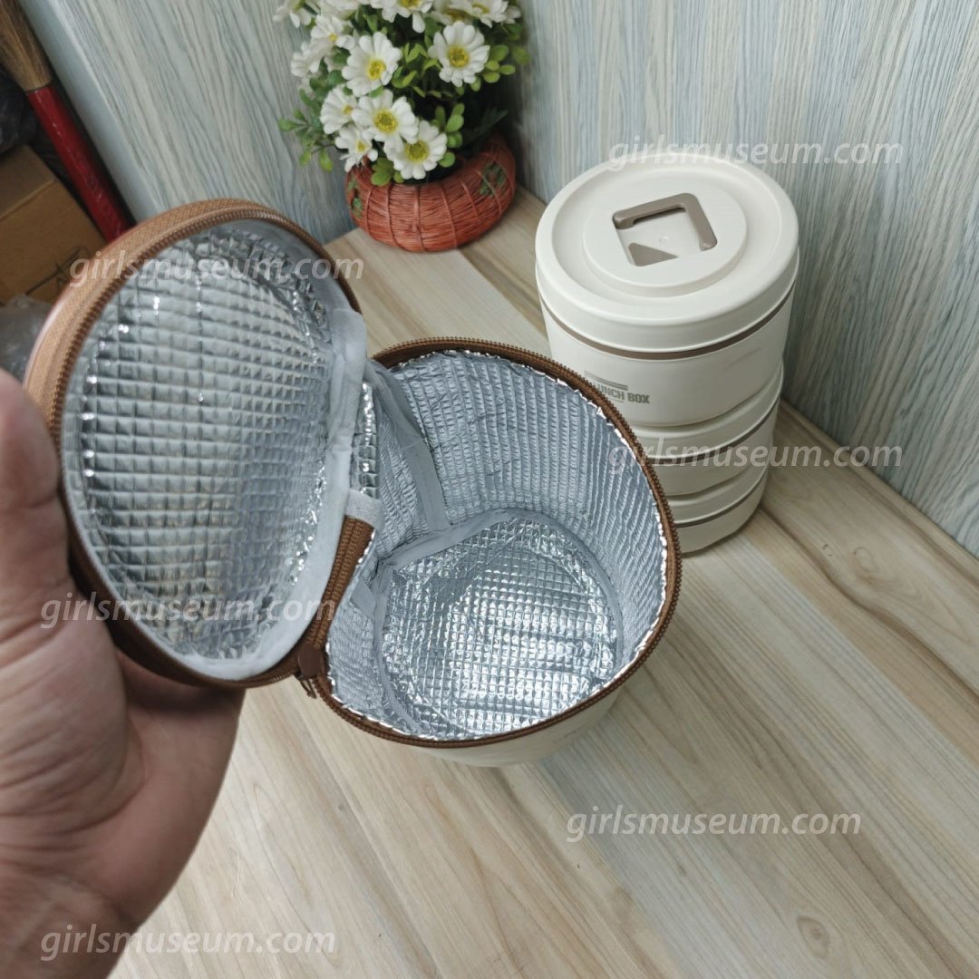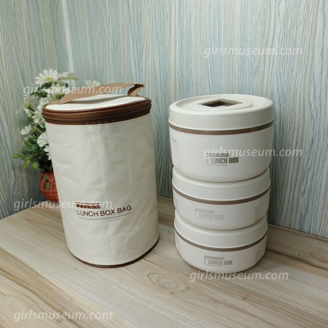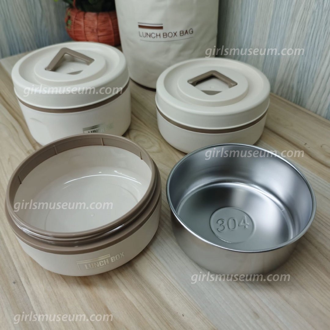 304 Stainless Steel-3 Pcs Round Lunch Box Set with Bag