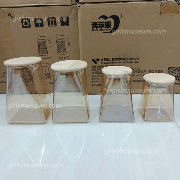 4 Pcs Curved Air Tight Jar Set With Wooden Lid