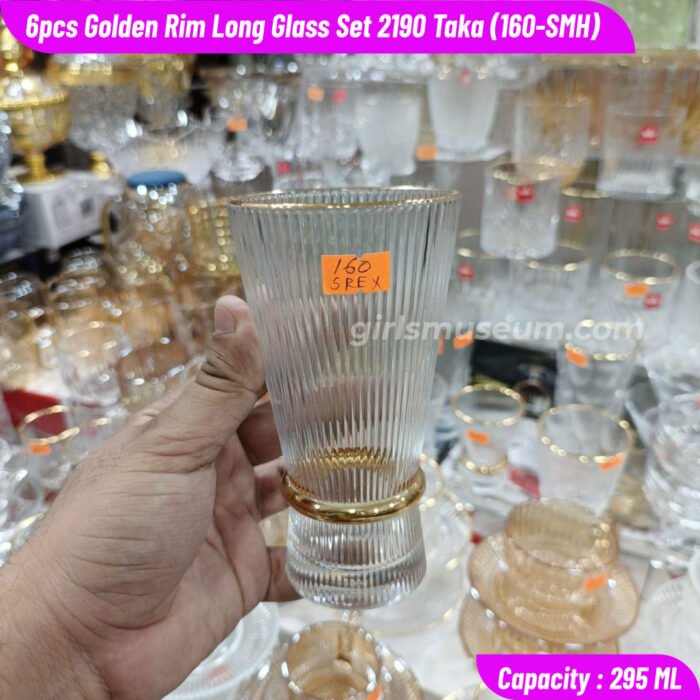 6 Pcs Glass Set -Golden Rim Long Glass Set-160