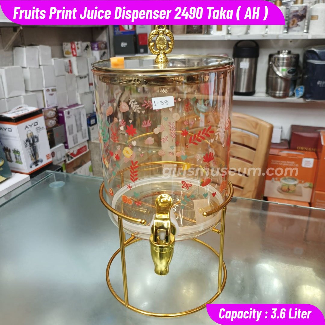Fruits Print Glass Juice Dispenser-3.6 Liter-AH